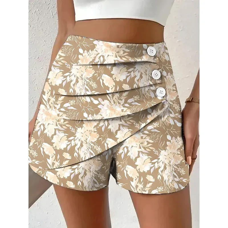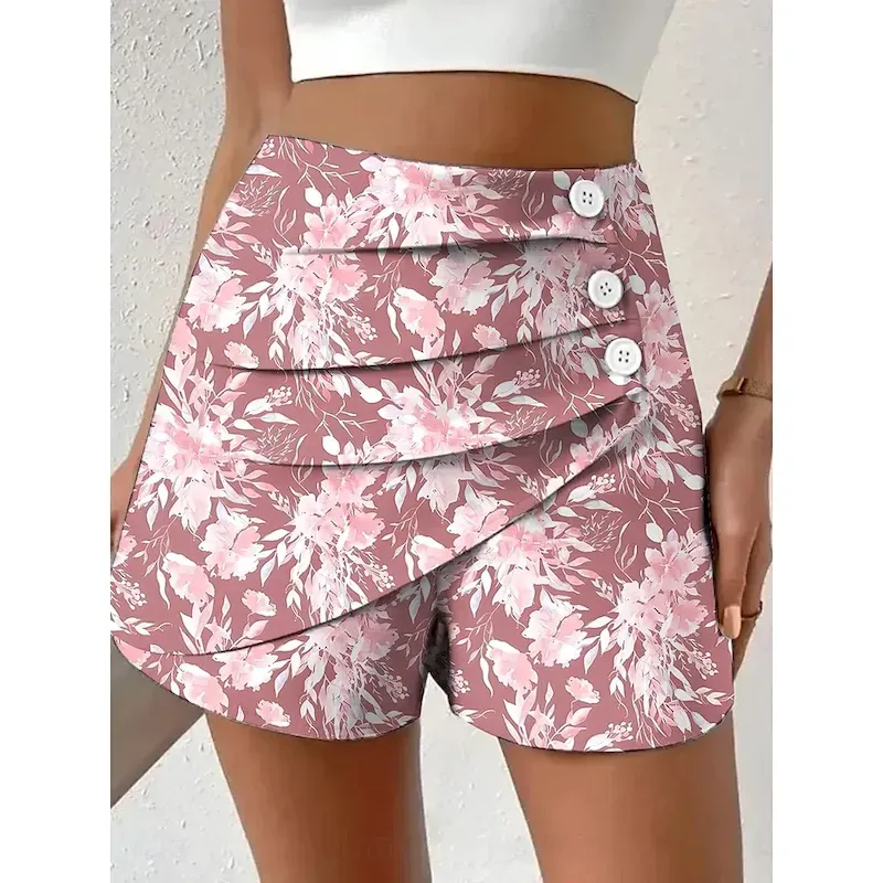 Women’s Chinos Shorts Vacation Vintage Ethnic Style Short High Waist Floral Graphic Pleated Micro-elastic Vacation Street Daily Robin’s Egg Blue Yellow Red Green Summer Spring Regular Fit