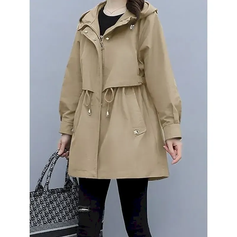 [Fabric]: Crafted from a high-quality polyester blend, this women’s coat is designed to provide a cozy and breathable experience. The fabric ensures thermal warmth and comfort in cooler temperatures, maintaining durability and structure throughout wear.