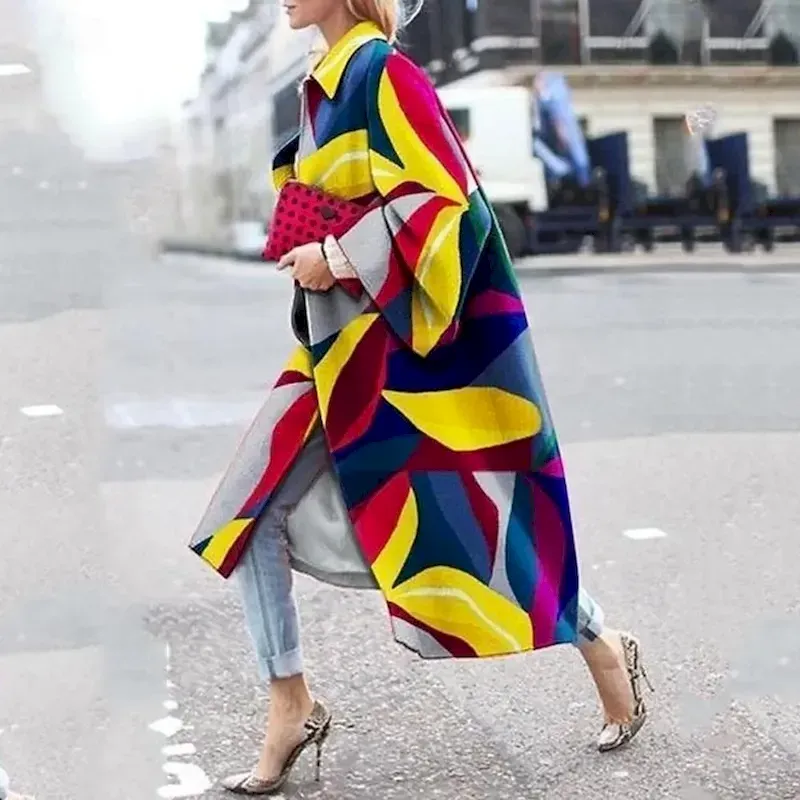 Women’s Coat Trench Coat Warm Comfortable Print Fashion Modern Casual Geometric Going out Weekend Long Turndown Regular Fit Long Sleeve Outerwear Yellow Green Dark Blue Winter