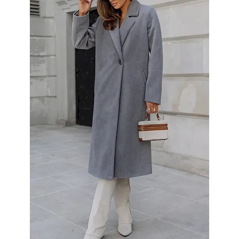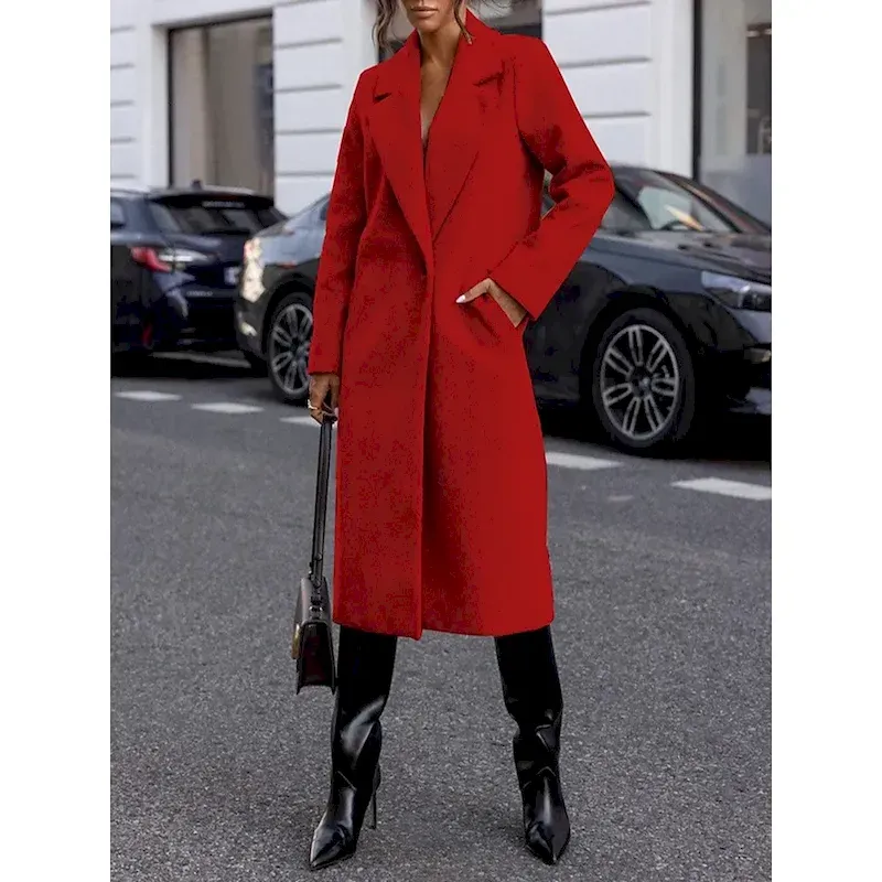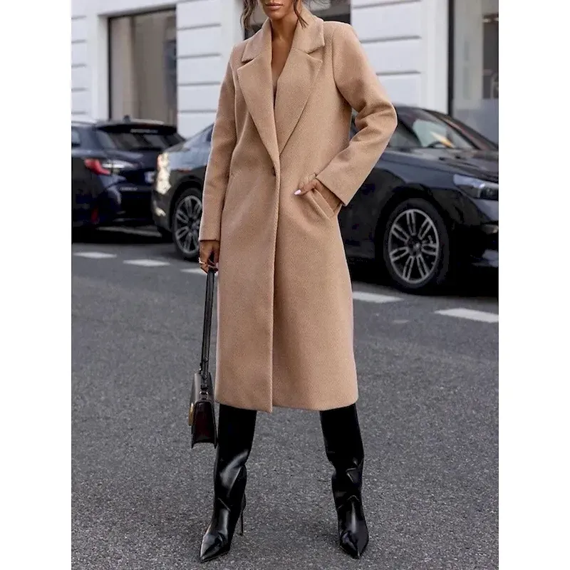 [Fabric]: Crafted from high-quality polyester, this coat offers both warmth and comfort for the winter months. The soft fabric mimics the texture of wool, providing a cozy feel without compromising on style.[Fit]: Designed with a regular fit, the coat features a structured silhouette that enhances the wearer’s figure. Its long length extends below the knee, providing a sophisticated and elongated appearance.[Design Highlights]: The coat boasts classic lapels and a single-breasted closure for a timeless look. With functional buttons and pockets, it combines elegance with practicality. The solid color palette and minimalist design make it a versatile wardrobe staple.[Occasions]: Perfect for casual daily wear, this elegant coat is suitable for various settings, from work to weekend outings. Easily pair it with tailored trousers or a sleek dress for a chic ensemble.[Size Notice]: Available in a range of sizes from S to XXL, this coat caters to diverse body types, ensuring a comfortable fit for everyone. Offered in colors such as white, black, red, gray, coffee, and khaki, there are options to suit different tastes and preferences.OK