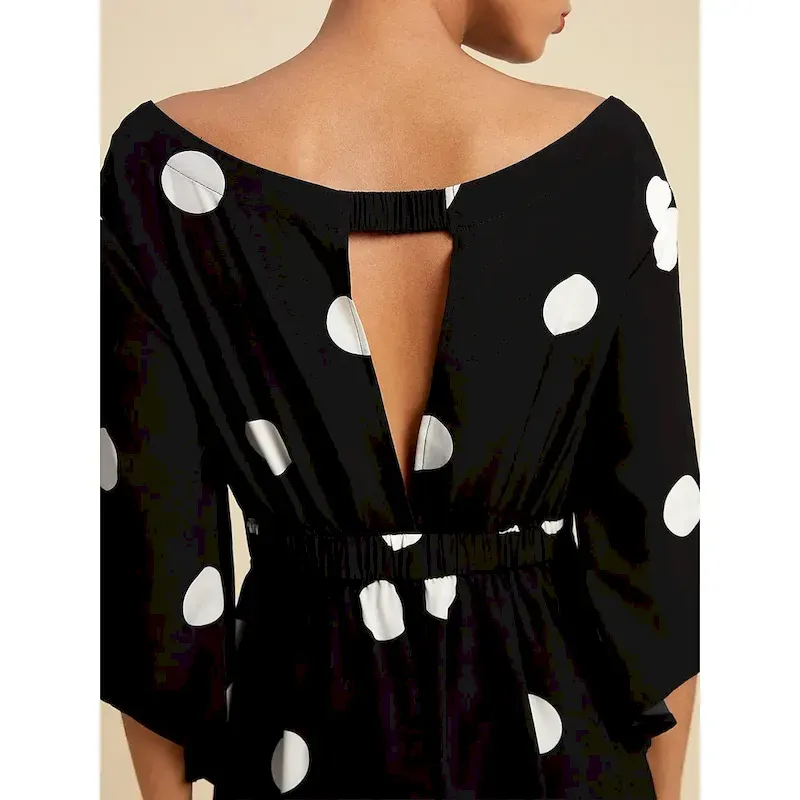 Women’s Elegant Dress Midi Dress Black 3/4 Length Sleeve Polka dot print Asymetric Hem Off the Shoulder Spring & Summer Off Shoulder Elegant Romantic S M L