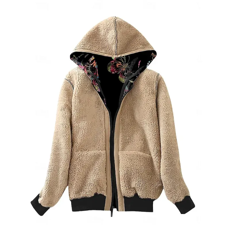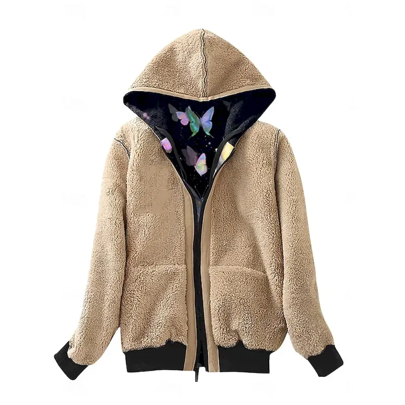 Women’s Fleece Jacket Teddy Coat Hoodie Jacket Warm Breathable Zipper Pocket Fleece Lined Casual Butterfly Vacation Street Daily Wear Going out Zipper Regular Hoodie Regular Fit Long Sleeve Outerwear