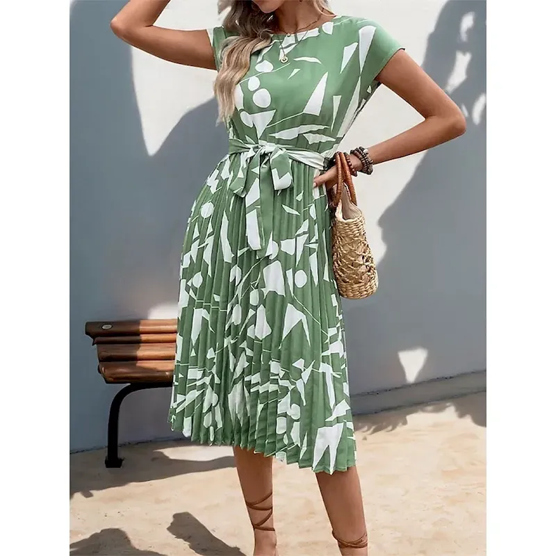 1.Design: Print Pleated2.Neckline: Crew Neck