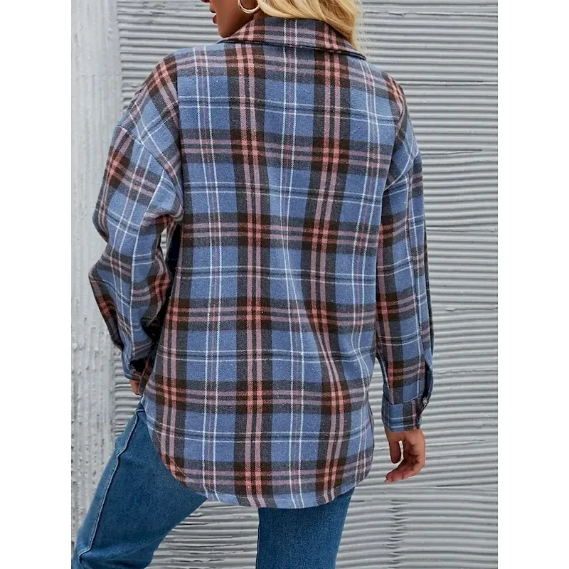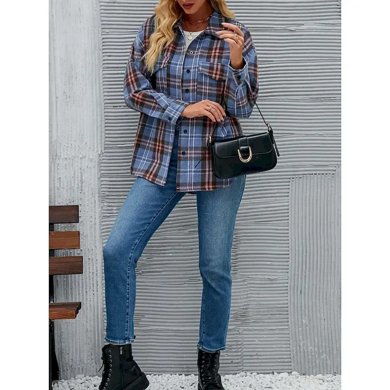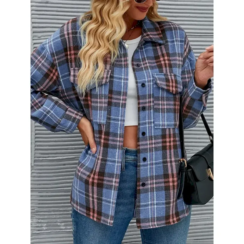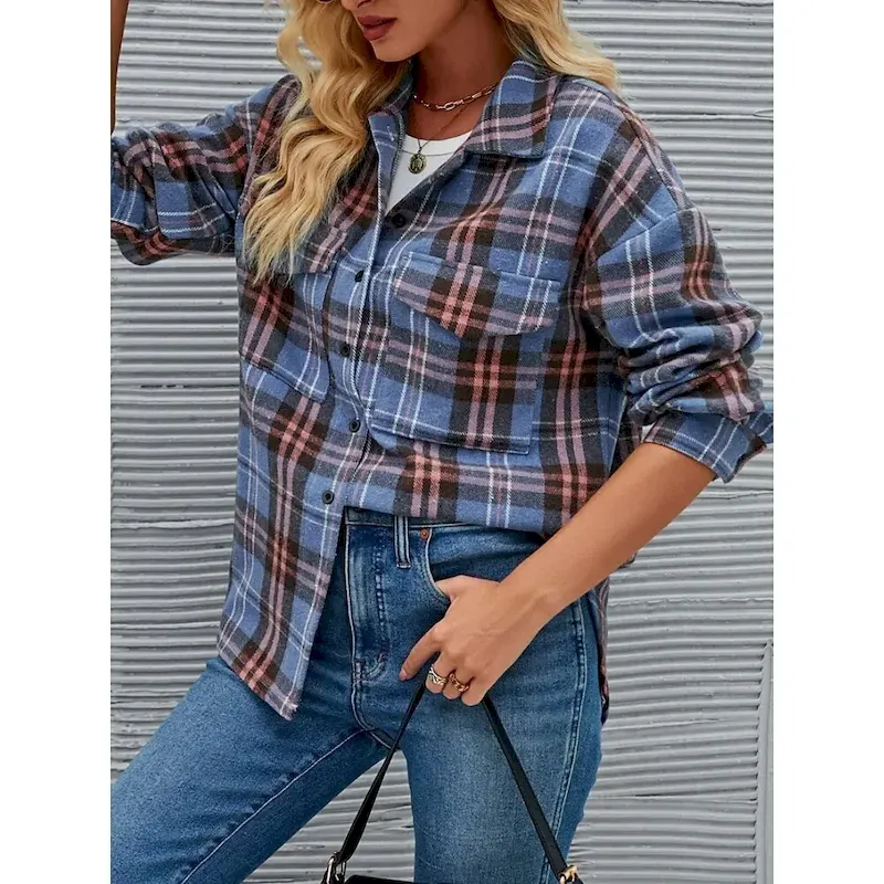 Women’s Shirt Jacket Casual Jacket Comfortable Breathable Pocket Buttons Print Fashion Casual Plaid Vacation Street Casual Daily Wear Single Breasted Regular Stand Collar Regular Fit Long Sleeve