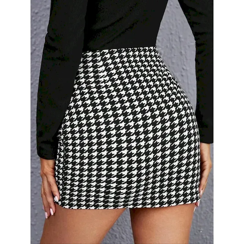 Women’s Skirt Bodycon Fashion Casual Mini High Waist Skirts Houndstooth Print Micro-elastic Street Daily Black Spring Polyester
