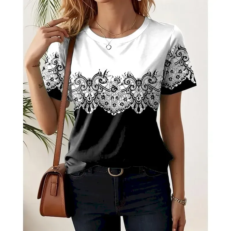 Women’s T Shirt Floral Casual Short Sleeve Round Neck Regular Tops Daily Print Black White Light Green Blue Purple Summer
