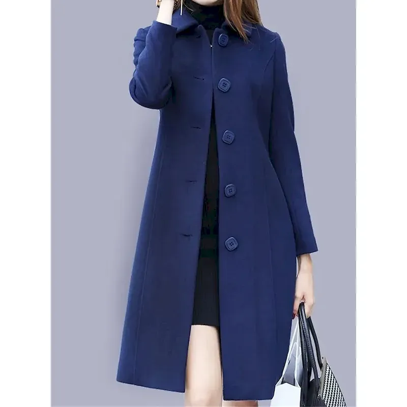 [Fabric]: Crafted from a high-quality polyester blend, this women’s winter coat provides a windproof and warm experience, perfect for fall and winter weather. The fabric ensures breathability while maintaining a comfortable and cozy feel.[Fit]: Featuring a loose fit design, this outerwear offers ease of movement, making it ideal for layering over other garments. The inelasticity of the material ensures a structured yet relaxed silhouette, contributing to its casual and street style appeal.[Design Highlights]: This coat showcases a turndown neckline and is complemented by a chic, single-breasted placket. The distinctive buttons and practical pockets add both functionality and a touch of sophistication. With a bold, vibrant blue color accented by a contrasting black trim, it easily stands out while maintaining elegance.[Occasions]: Perfect for a variety of settings such as daily wear, vacations, street outings, and work. Its versatility and stylish design make it suitable for both casual and more refined occasions, ensuring you stay warm and fashionable throughout the season.[Size Range]: Available in a range of sizes from S to 2XL, this coat is designed to accommodate various body types, providing a comfortable and flattering fit for many individuals.OK
