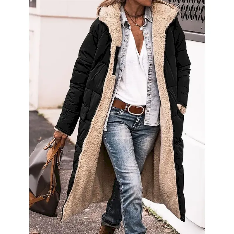 [Fabric] This women’s winter coat is crafted with a durable polyester outer shell, providing effective insulation and windproof properties. It features a plush fleece and cotton blend inner lining for enhanced thermal warmth and comfort, offering a micro-elastic fit that moves with you.[Fit] Designed in a regular fit, this longline coat provides a comfortable silhouette that allows for easy layering. The relaxed style ensures a blend of fashionable appeal and practicality, perfect for everyday wear during the colder months.[Design Highlights] The coat features a cozy hooded neckline, adding an extra layer of protection against the elements. The full-zip closure and deep pockets enhance functionality, while the quilted design contributes to its contemporary street style look.[Occasions] Ideal for street, casual, and outdoor activities, this jacket is suitable for daily wear and going out. Its solid color design in olive green pairs effortlessly with a variety of outfits, making it a versatile choice for fall and winter.[Size Range] Available in sizes S, M, L, XL, and 2XL, this coat offers a range of options to accommodate different body types, ensuring a comfortable fit for everyone seeking style and warmth.