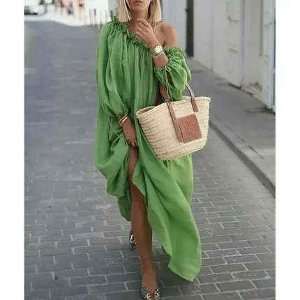 Women’s Casual Dress Swing Dress Boho Dress Long Dress Maxi Dress Apricot Green Blue Long Sleeve Pure Color Ruched Winter Fall Spring One Shoulder Fashion Winter Dress Daily Vacation Loose Fit 2023 M