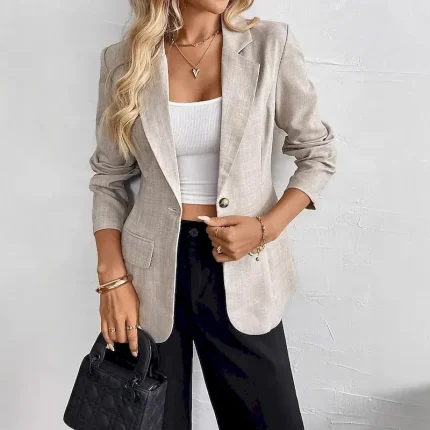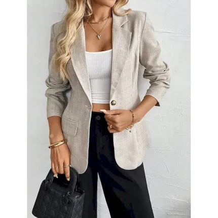Specifications Gender:Women’sOuterwear Type:BlazerOccasion:Office,Work,Casual,Daily,FormalSeason:Fall,SpringFunction:ComfortableFabric:PolyesterPlacket:Single BreastedStyle:Fashion,Elegant,Simple,OL Style,VintageOuterwear Length:ShortPattern:PlainDesign:ButtonsNeckline:Notch LapelSleeve Length:Long SleeveFit Type:Regular FitElasticity:InelasticLook After Me:Machine wash,OK